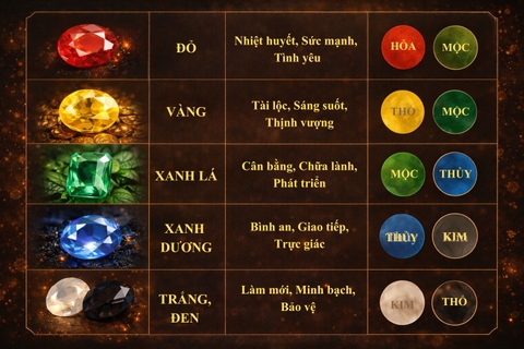 Trong phong thủy, việc chọn màu sắc đá quý theo mệnh ngũ hành không chỉ giúp bạn tăng cường năng lượng tích cực, mà còn tránh xung khắc, giảm vận xui. Dưới đây là gợi ý cách chọn màu đá quý phù hợp với từng mệnh: