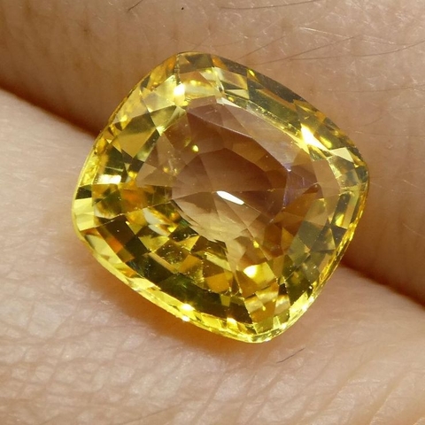Sapphire xử lý: Một số Sapphire bị xử lý nhiệt để tạo màu vàng, thường có dấu hiệu màu loang hoặc vệt trắng nhẹ khi soi dưới đèn mạnh.