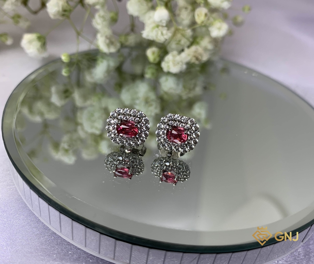 Hoa tai đính đá Spinel đỏ thiên nhiên tạo nét sang trọng, trẻ trung cho phái đẹp.