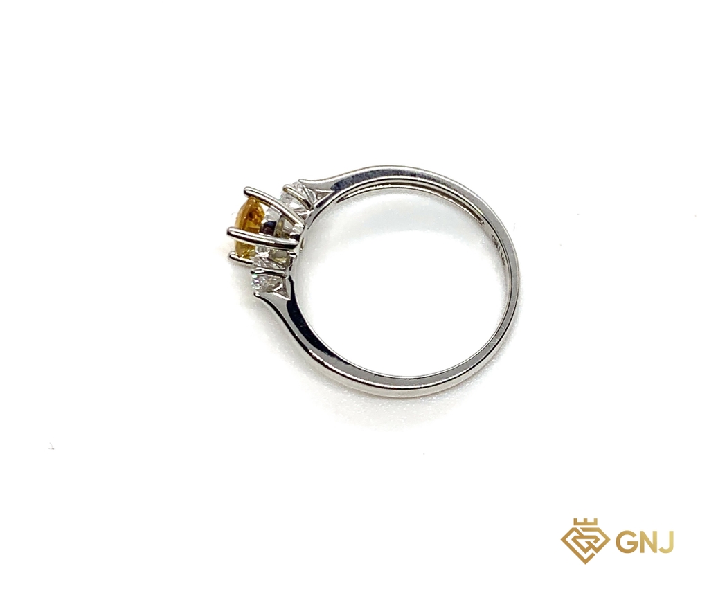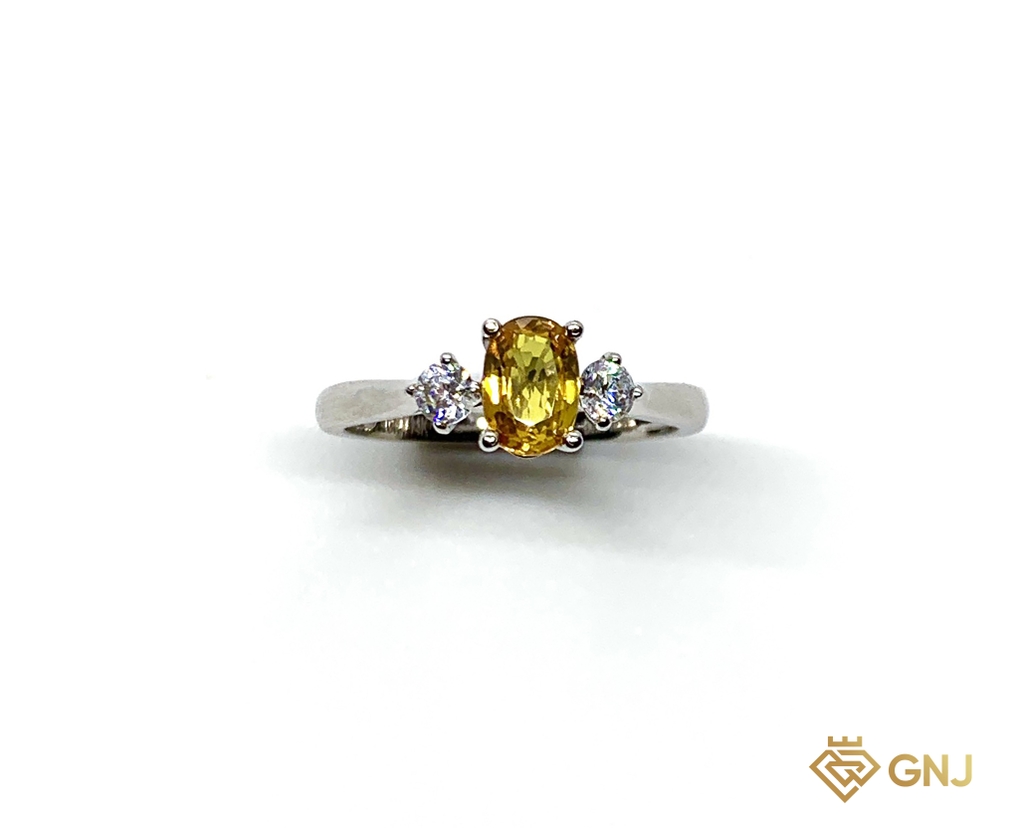 Nhẫn nữ vàng trắng đính đá Sapphire vàng thiên nhiên tạo nét sang trọng mà đầy trẻ trung cho phái đẹp. Khi đeo sản phẩm này trên bàn tay xinh giúp các cô gái nổi bật hơn trước đám đông, thu hút mọi ánh mắt. Đặc biệt về mặt phong thủy chiếc nhẫn mang lại nhiều may mắn, tài lộc cho người đeo.
