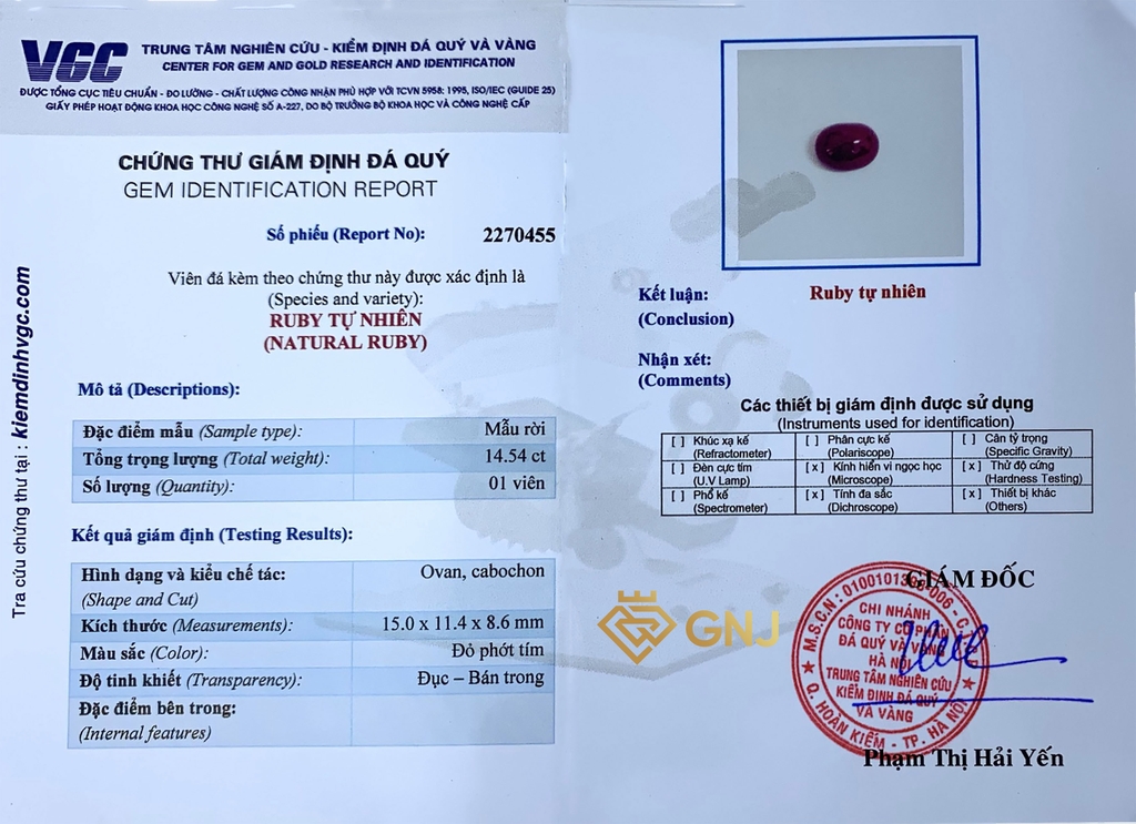 Viên đá ruby đỏ huyết tự nhiên Yên Bái.