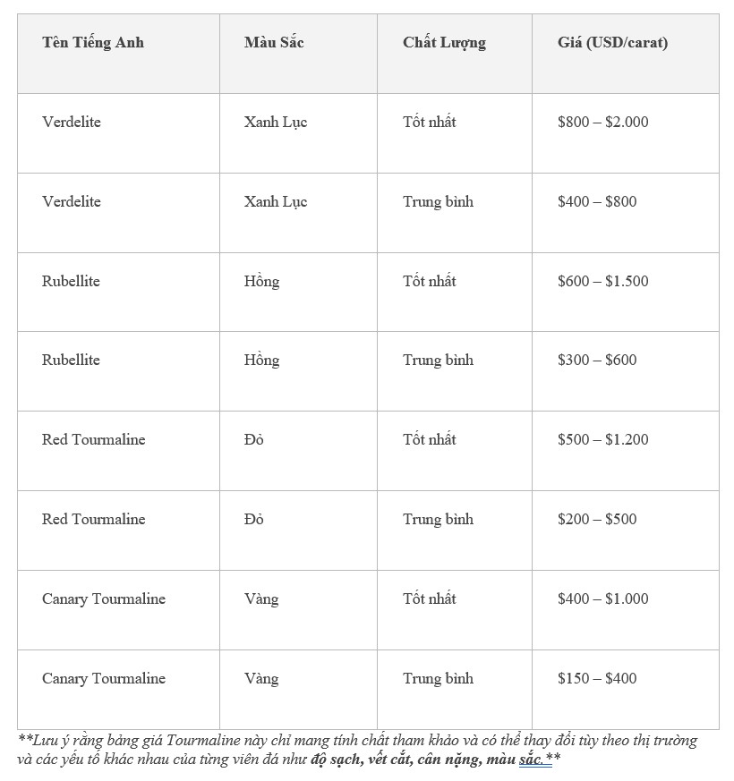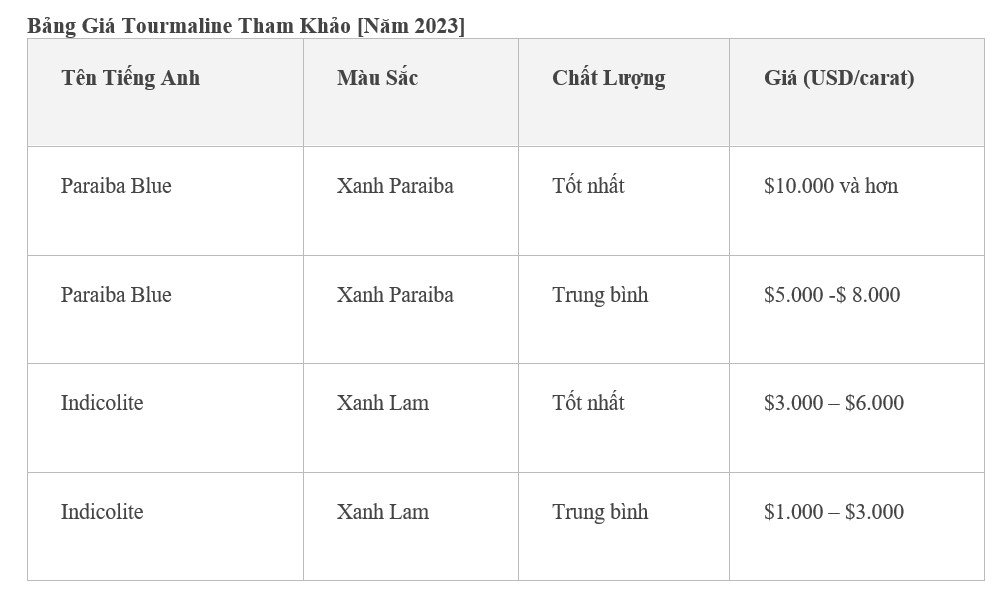 Bảng Giá Tourmaline Tham Khảo [Năm 2023]