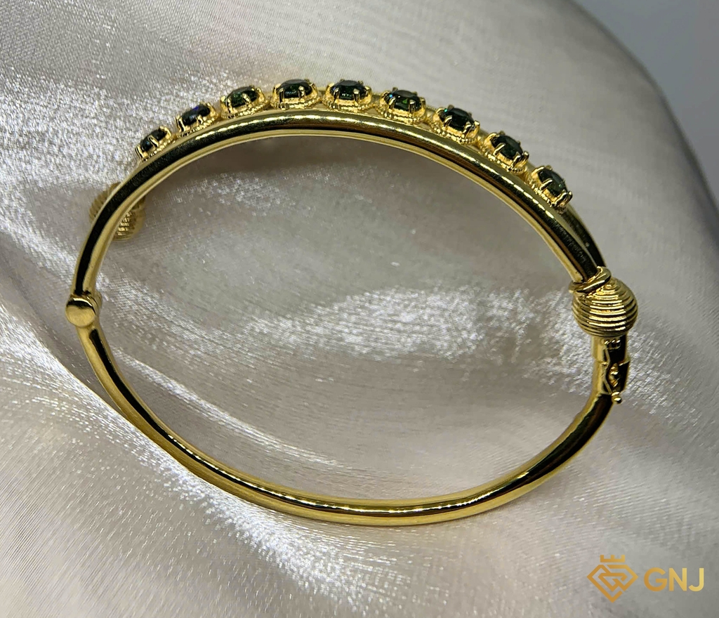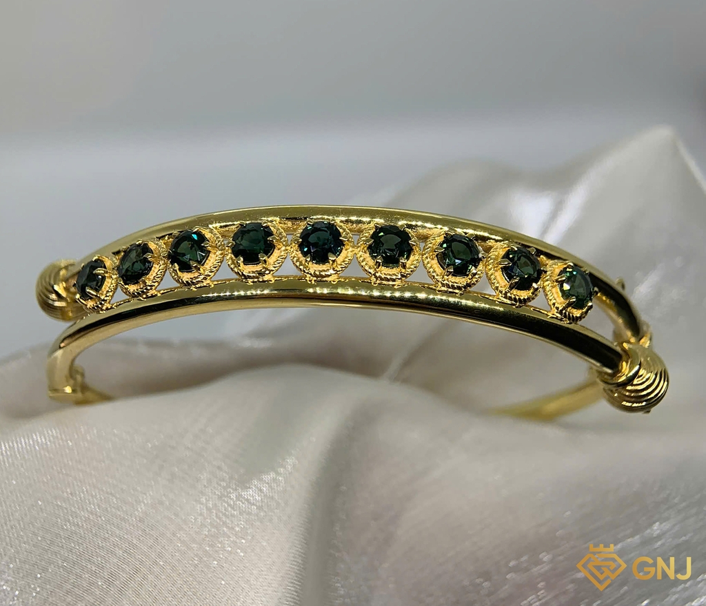 Lắc tay vàng kết hợp đá chủ Sapphire xanh tự nhiên, tạo nét sang trọng mà đầy trẻ trung cho phái đẹp. Khi mang theo sản phẩm này giúp các cô gái nổi bật hơn trước đám đông, thu hút mọi ánh mắt.