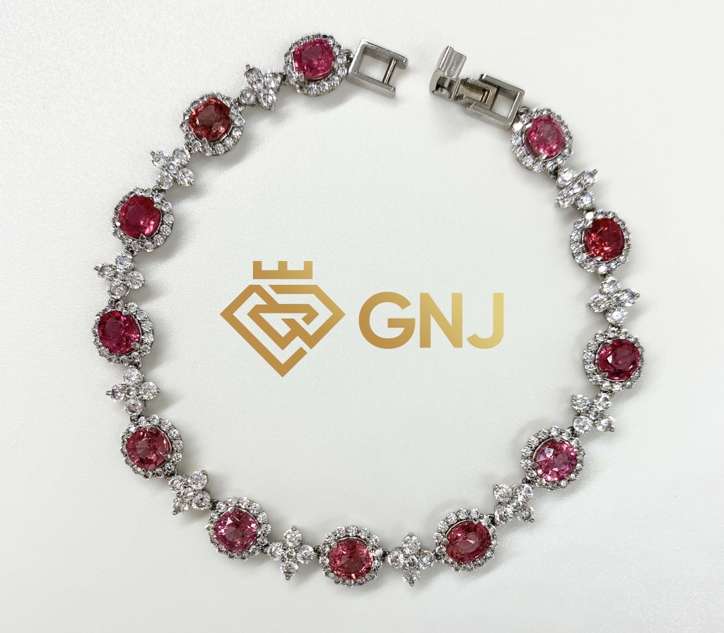 Lắc tay vàng trắng đính đá spinel tự nhiên