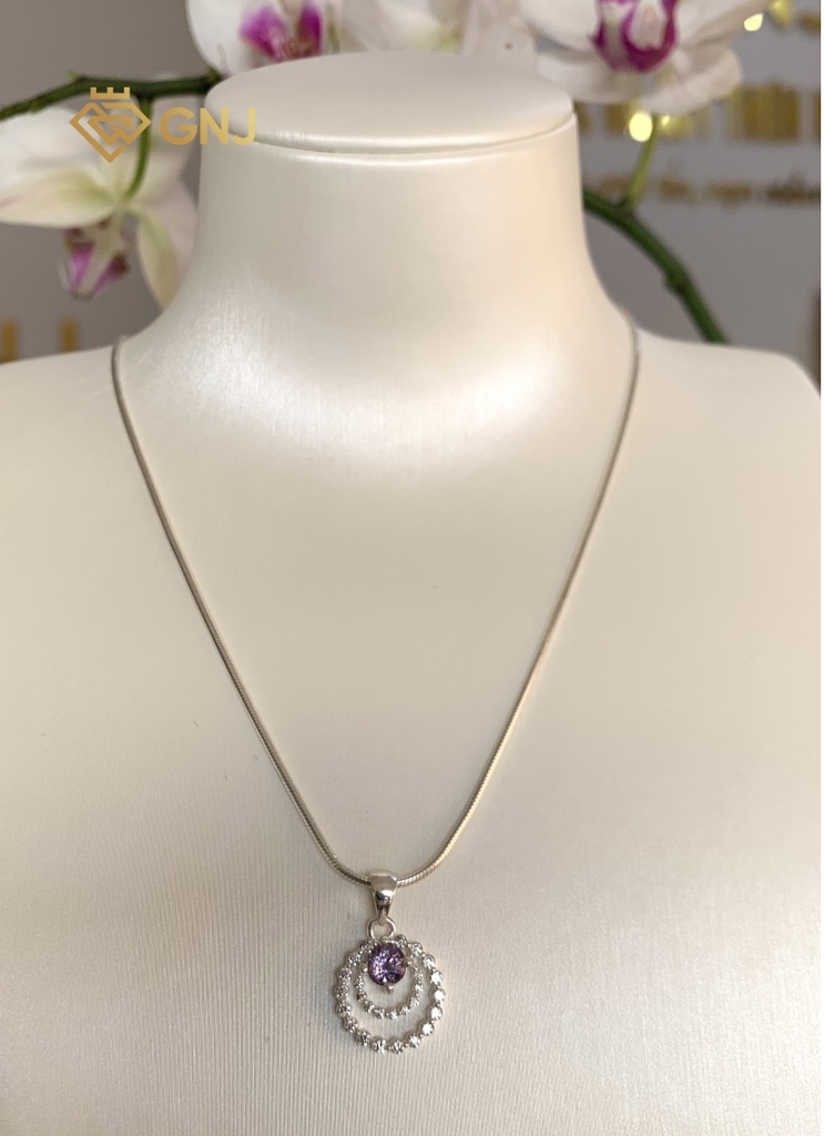 Mặt dây chuyền bạc 925 đính đá Spinel tím