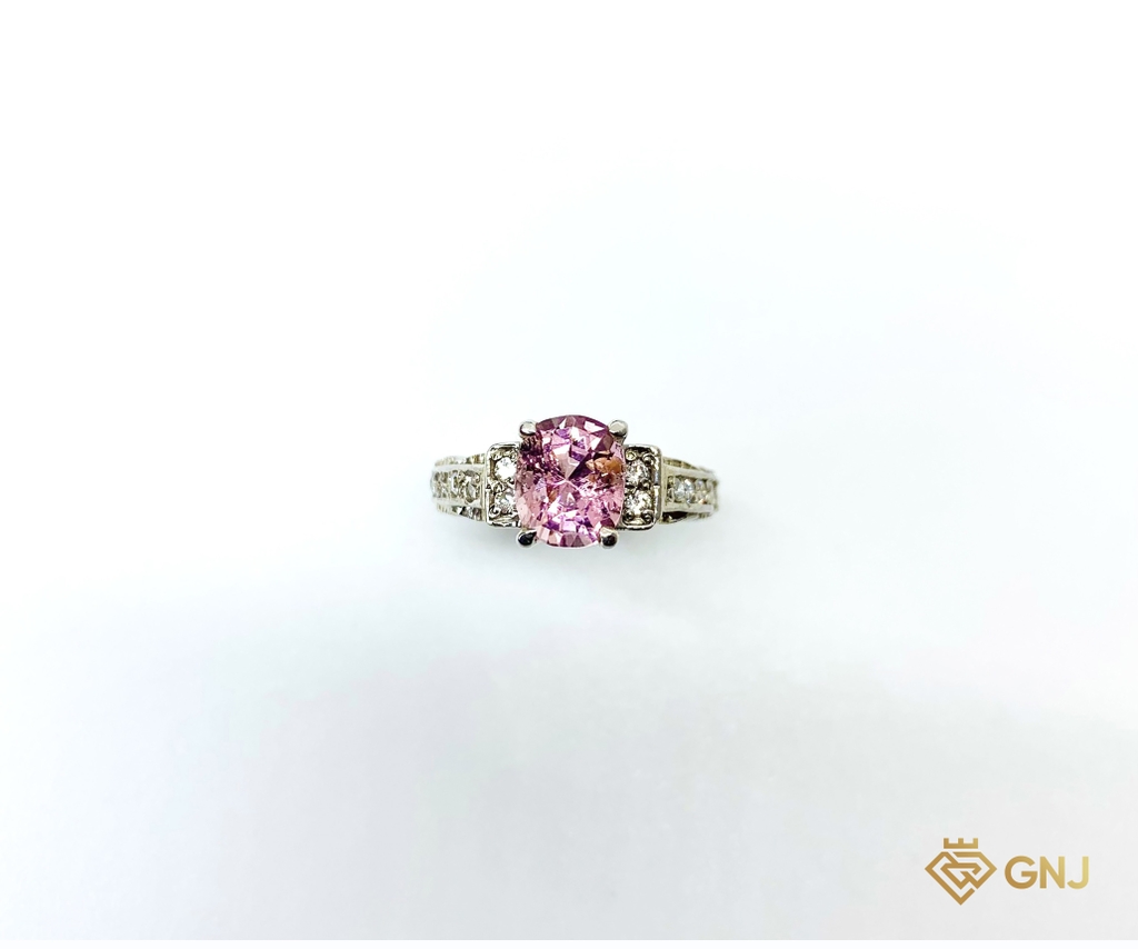 Nhẫn bạc 925 đính đá Tourmaline hồng tự nhiên