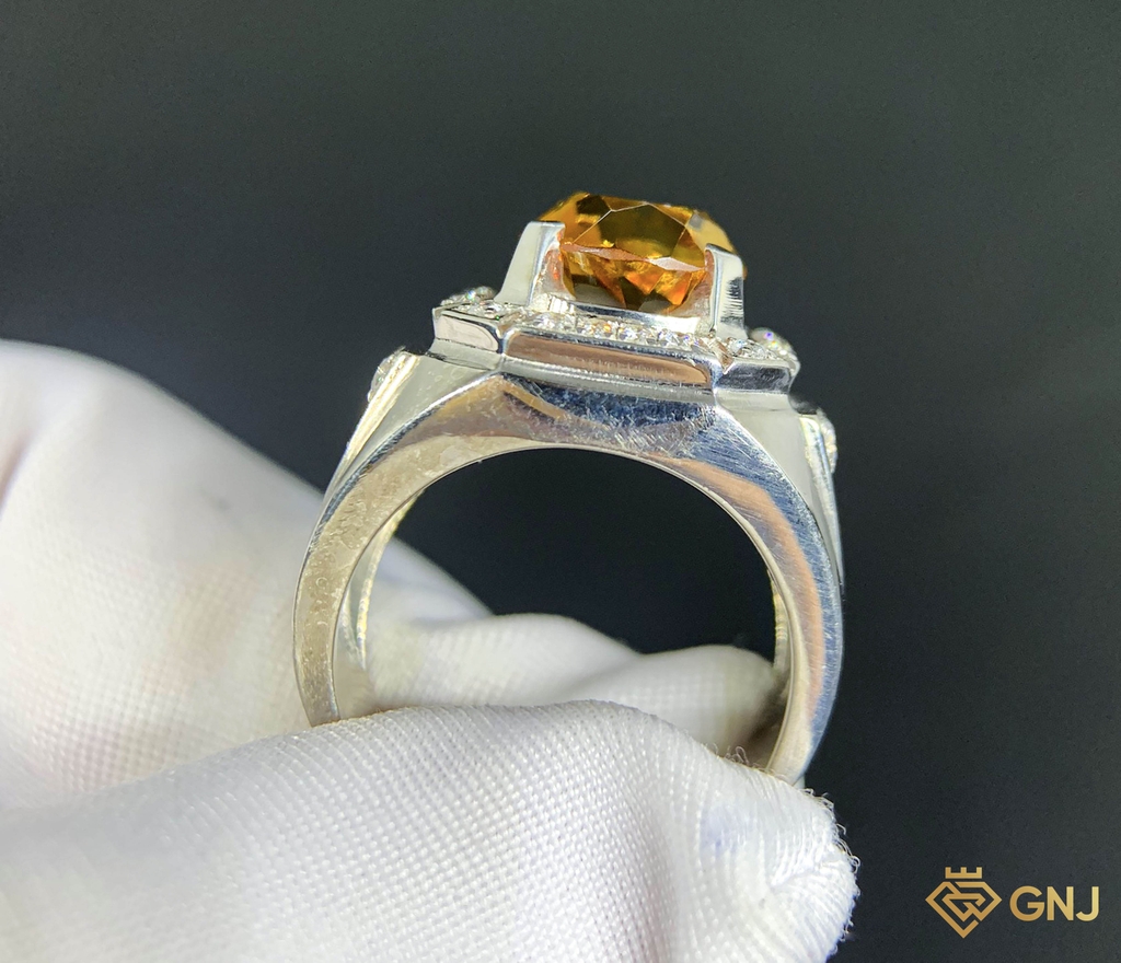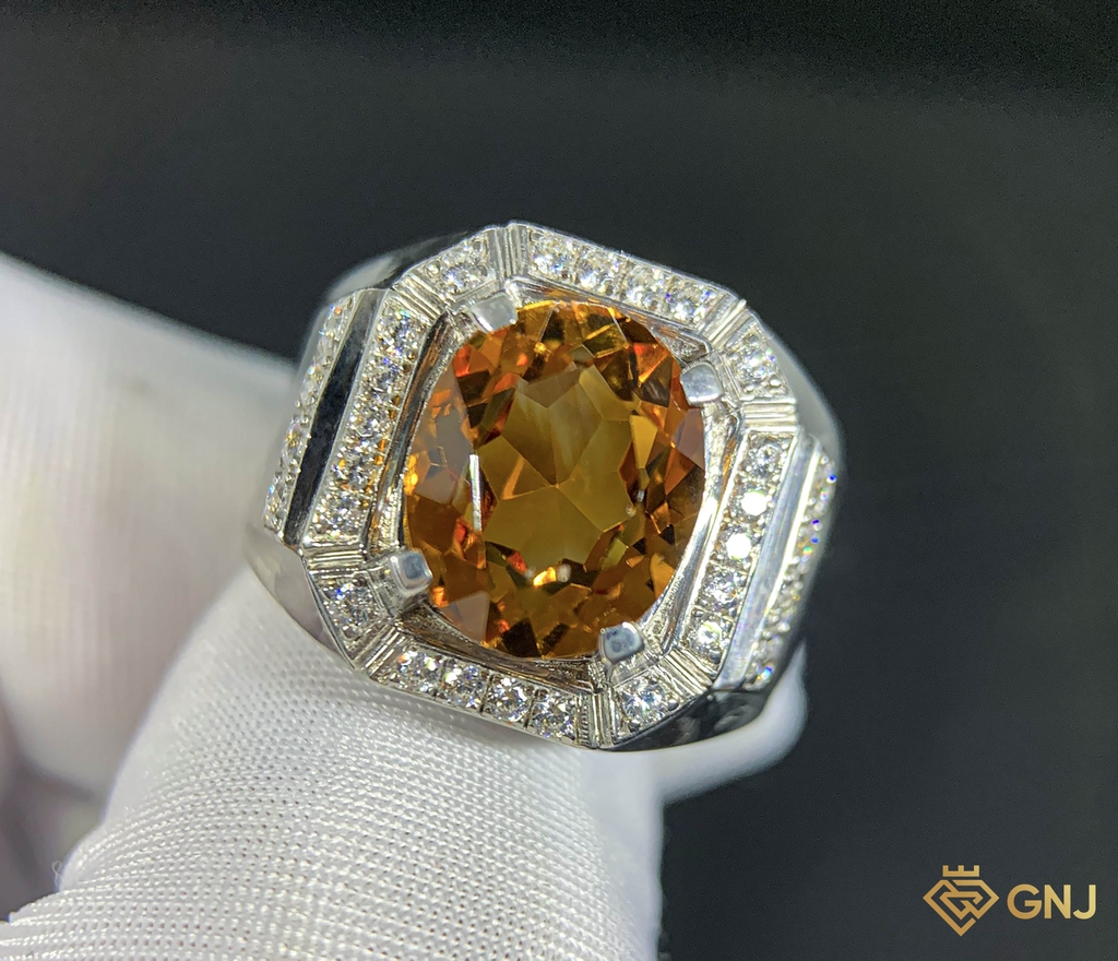 Nhẫn bạc nam đính đá Citrine tự nhiên