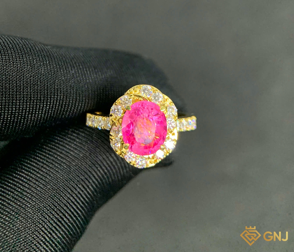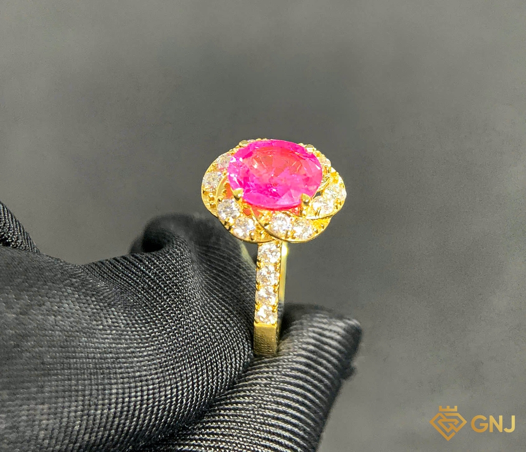 Nhẫn vàng đính đá Spinel hồng tự nhiên