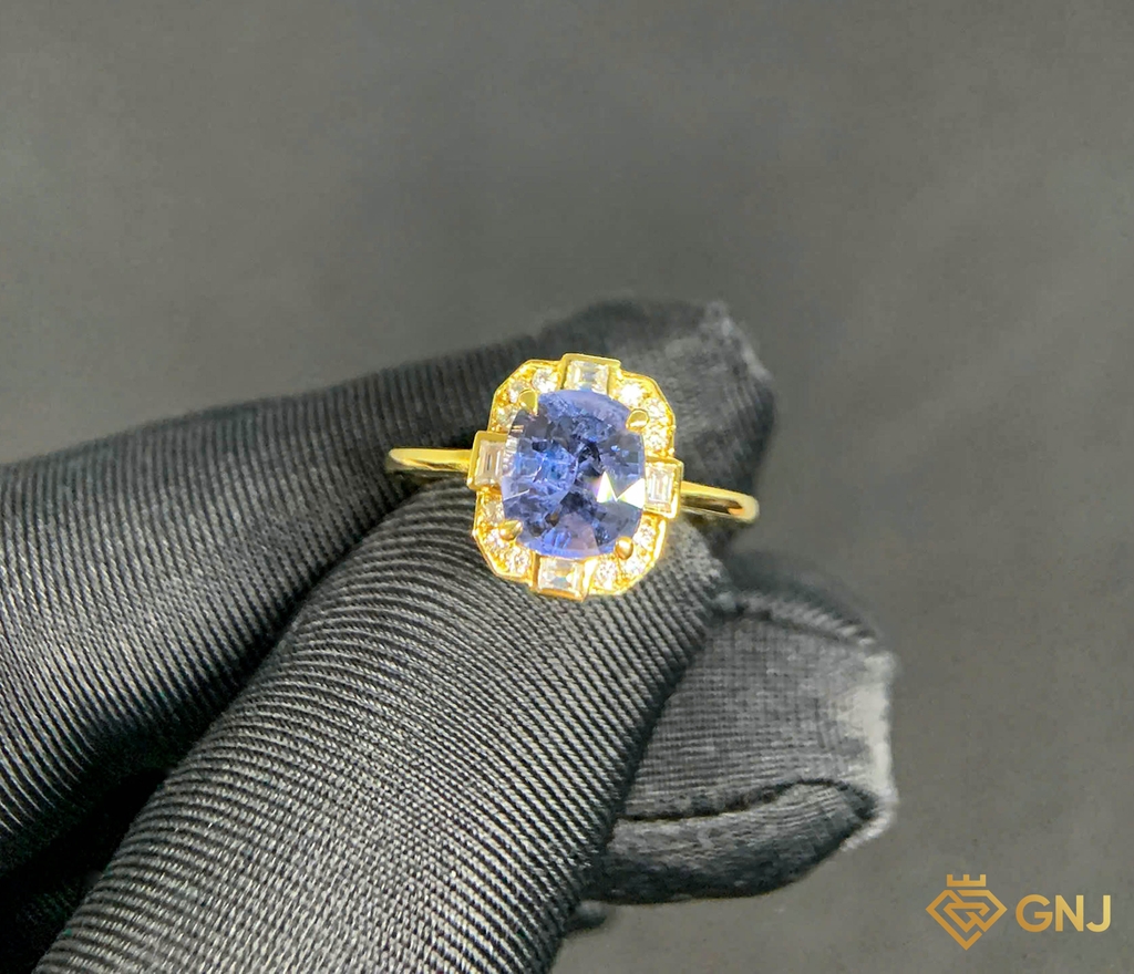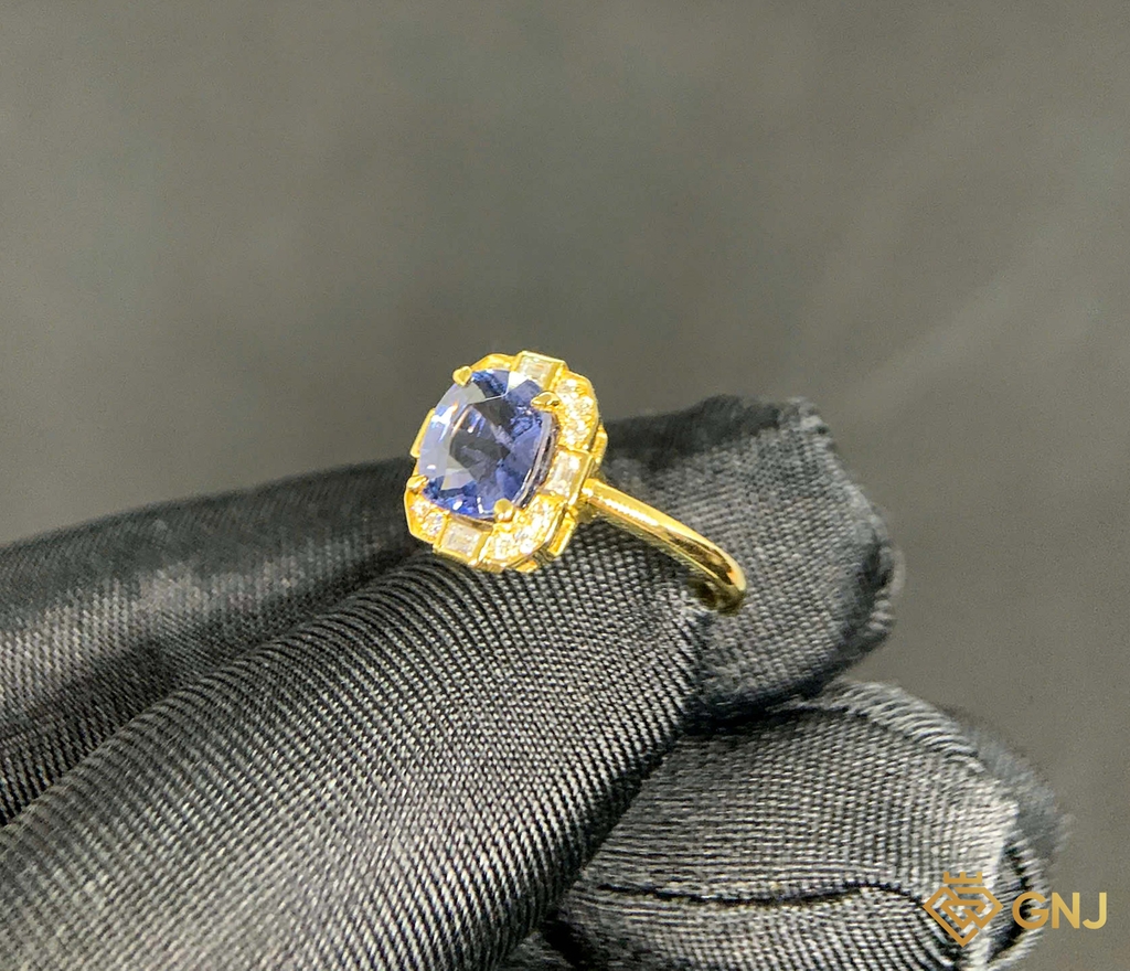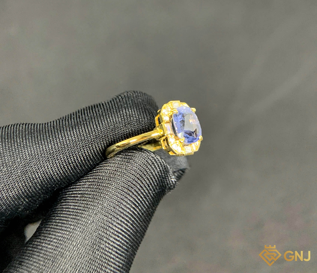 Nhẫn vàng đính đá Spinel xanh tự nhiên