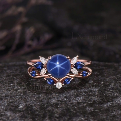- Sapphire Sao (Star Sapphire): Loại này có hiệu ứng quang học độc đáo với hình sao 6 hoặc 12 cánh xuất hiện trên bề mặt đá, làm tăng thêm giá trị và sự quyến rũ.