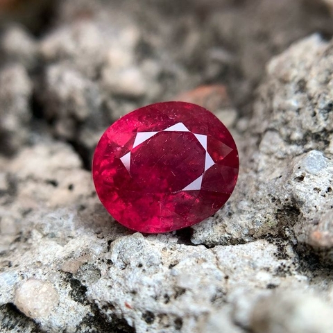 Ruby là biến thể đỏ của khoáng chất Corundum (Al₂O₃), với độ cứng lên tới 9 – chỉ đứng sau kim cương. Ruby nổi tiếng với màu đỏ lửa, đặc biệt là sắc “Pigeon Blood” (máu bồ câu) đến từ Myanmar – được xem là đỉnh cao giá trị.