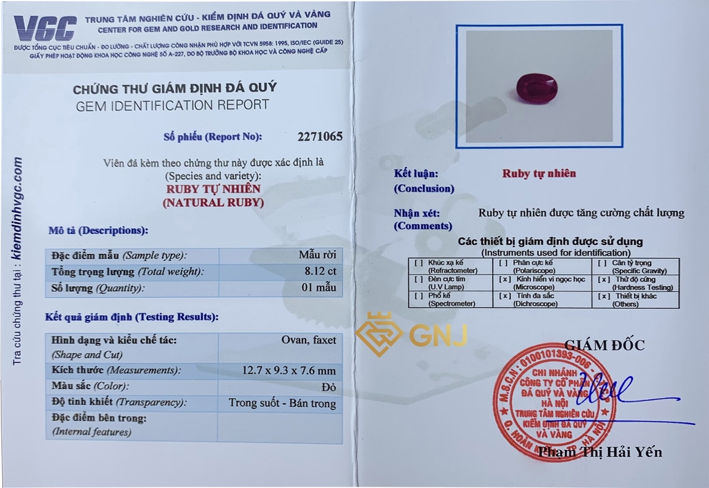 Loại đá: Ruby tự nhiên đã xử lý qua keo nhiệt.