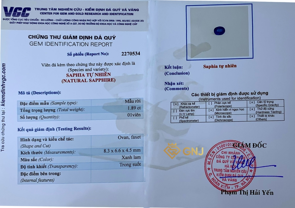 Trọng lượng: 1.89 cts