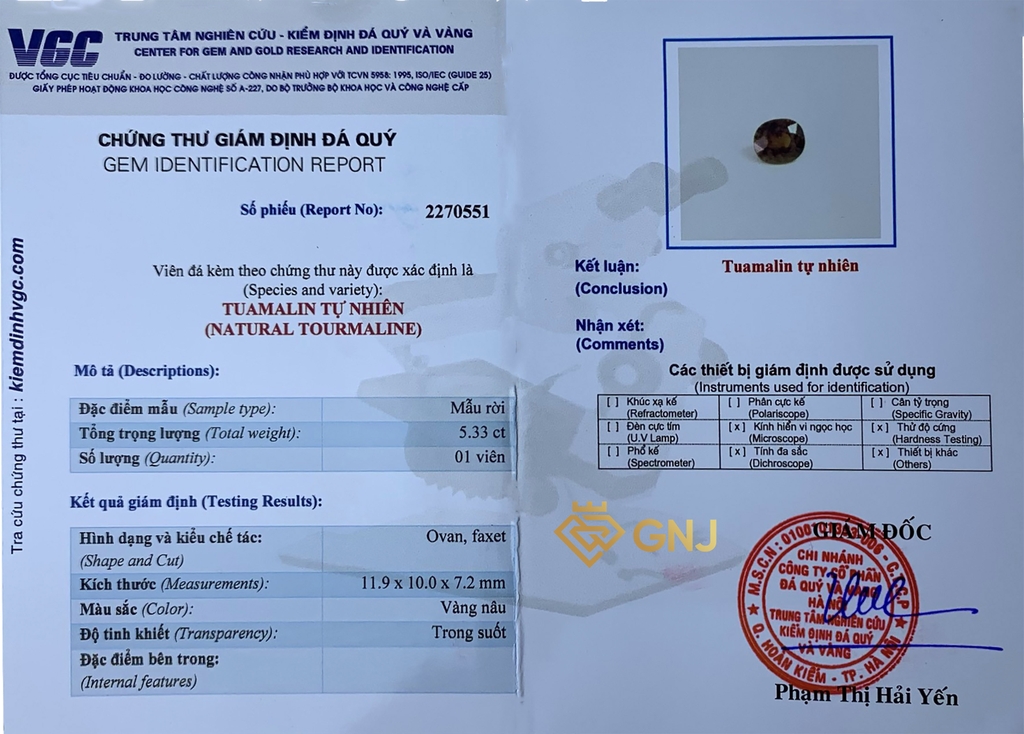 Viên đá tourmaline vàng nâu thiên nhiên 100%.