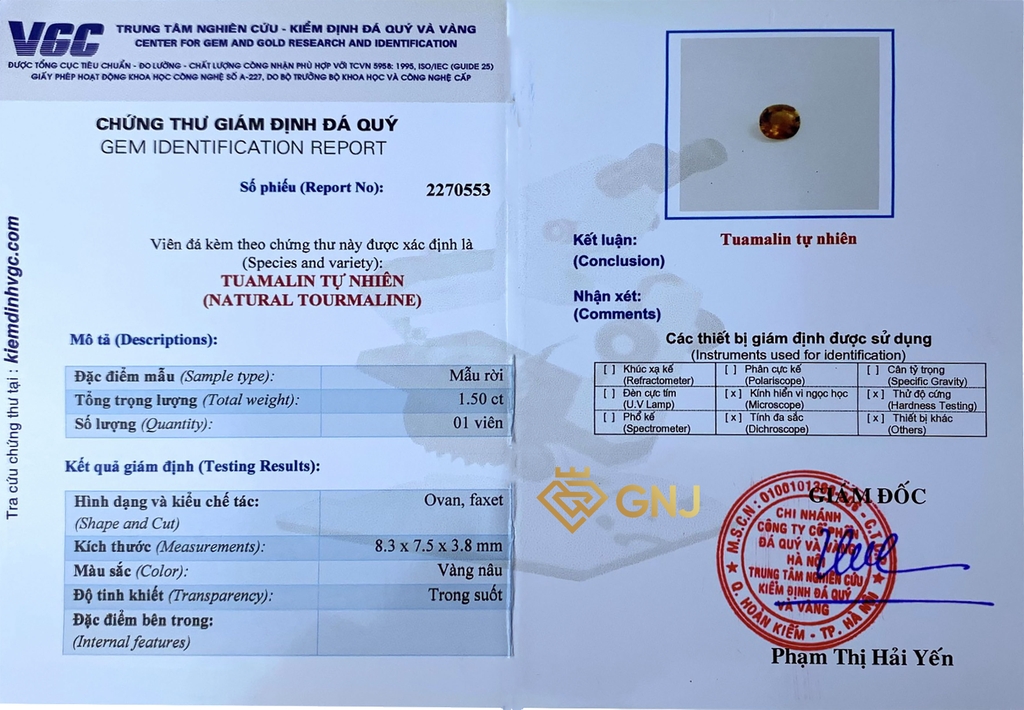 Viên đá tourmaline vàng nâu thiên nhiên 100%.