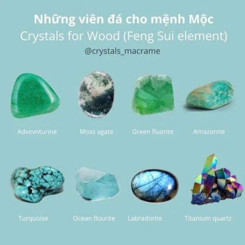 - Đá phong thủy: Đá quý không chỉ là biểu tượng của sự giàu có mà còn giúp cân bằng năng lượng và bảo vệ sức khỏe cho người mệnh Mộc như đá thạch anh xanh, đá cẩm thạch xanh, đá quamarine.